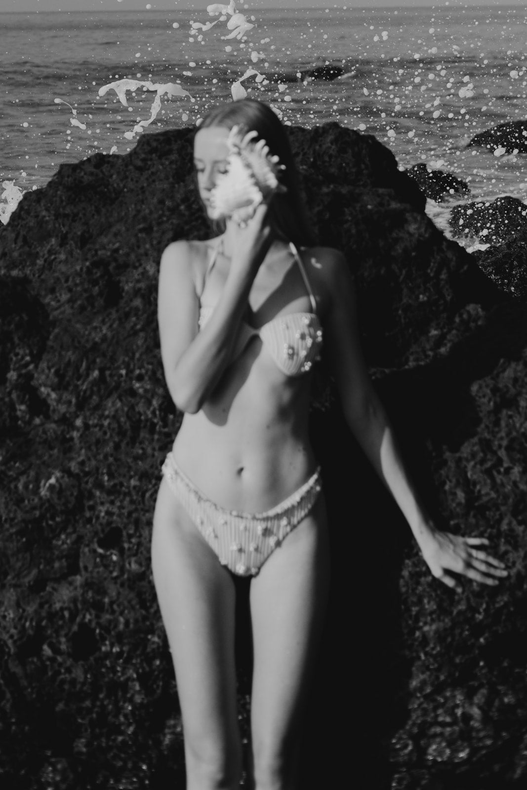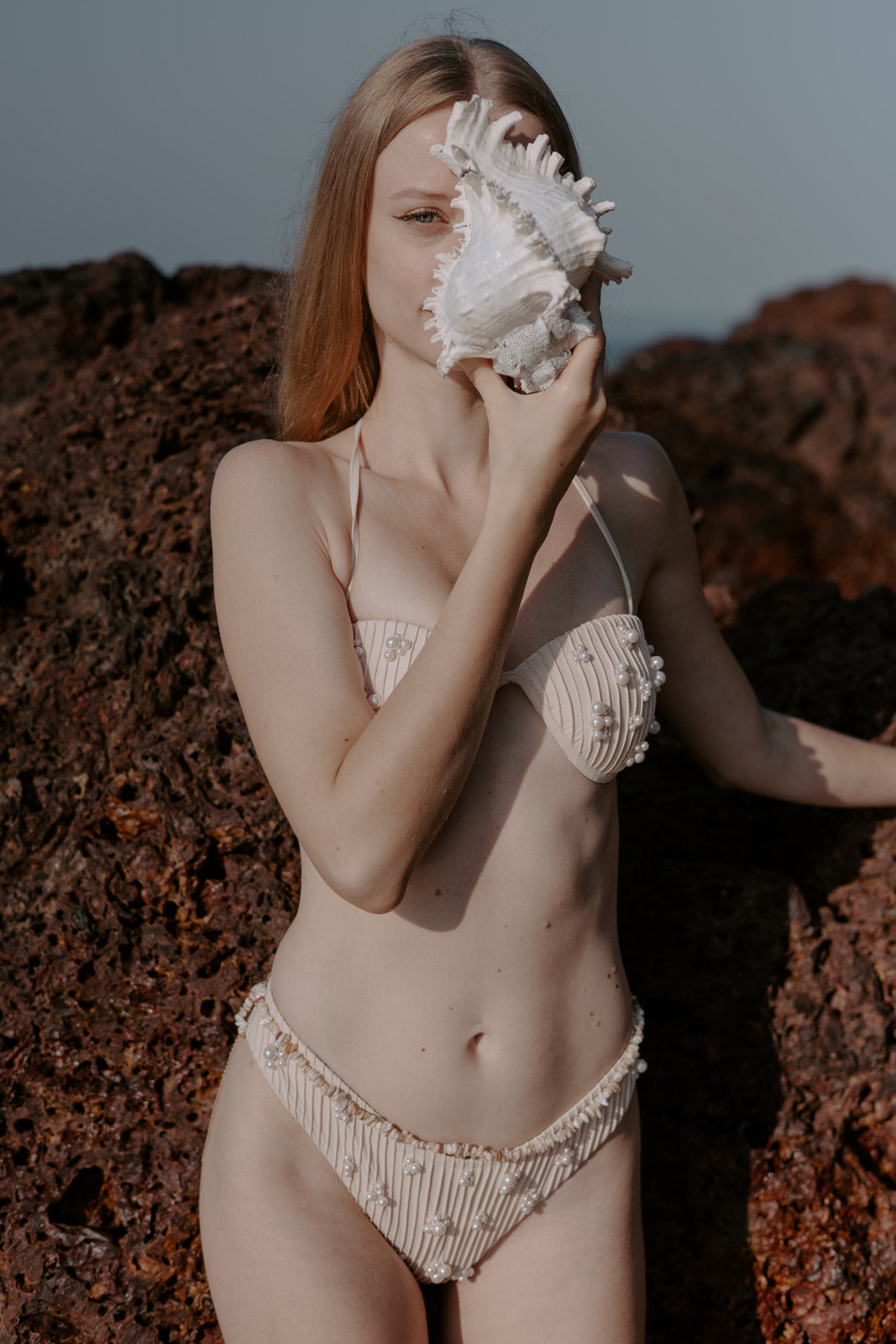 The Scallop Set is a Sea Amour signature—romantic, sculpted, and unapologetically graceful. This exquisite set features a unique scalloped texture, delicately adorned with pearl.The balconette silhouette and flattering cut of the bottoms ensure a comfortable and confident fit. The soft beige hue and pin-tuck texture echo the elegance of seashells, making it a timeless staple for sea-loving sirens.