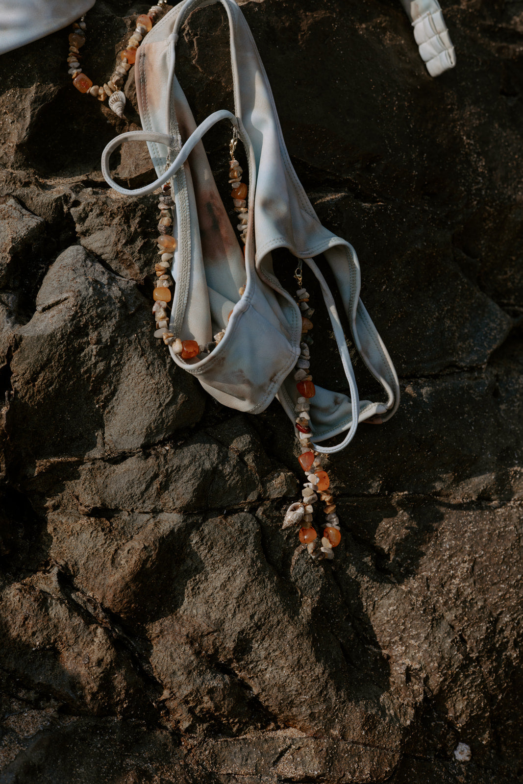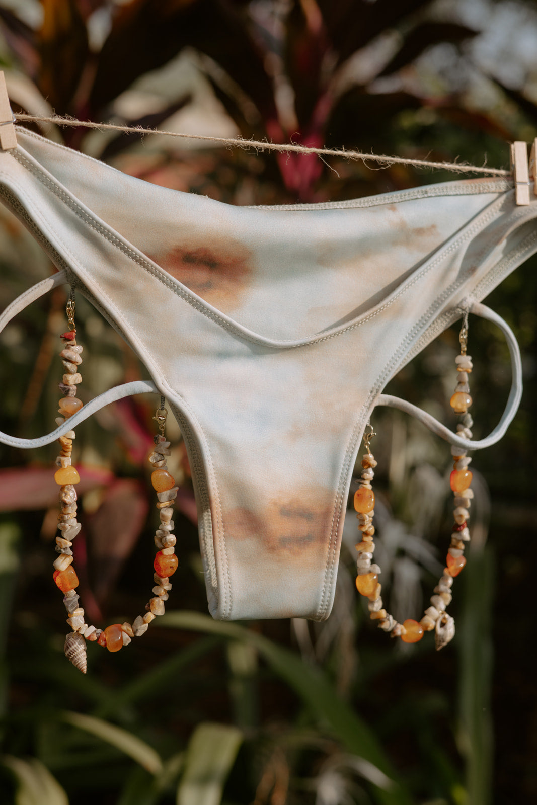 Designed with delicate double straps and handcrafted shell-and-gemstone bead detailing charm, this piece is a wearable work of art that moves with the rhythm of the waves. The minimal yet statement design sits flawlessly on the hips, giving you an effortlessly sculpted silhouette while exuding the spirit of wanderlust.